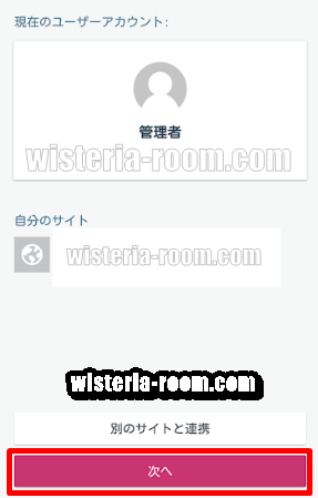 管理者と自分のサイトを確認して、大丈夫なら「次へ」をタップしてください。