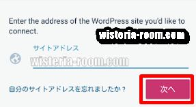 ワードプレスで最初に設定した「ユーザー名」と「パスワード」を入力して、「次へ」をタップしてください。