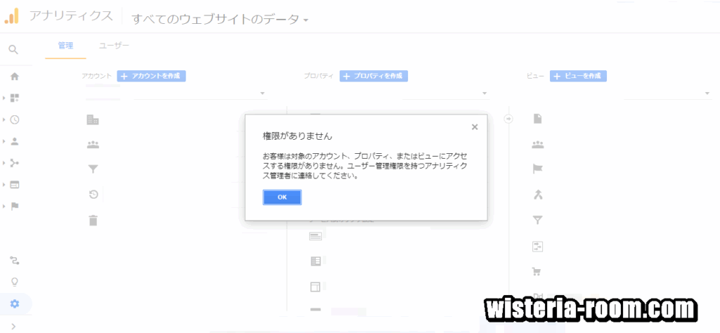 お客様は対象のアカウント、プロパティ、またはビューにアクセスする権限がありません。ユーザー管理権限を持つアナリティクス管理者に連絡してください。